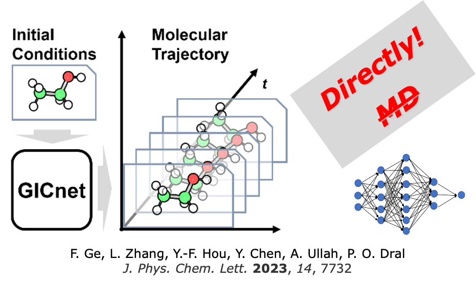 Fuchun Ge, Lina Zhang, Yi-Fan Hou, Yuxinxin Chen, Arif Ullah, Pavlo O. Dral*. Four-dimensional-spacetime atomistic artificial intelligence models. J. Phys. Chem. Lett. 2023, 14, 7732–7743. DOI: 10.1021/acs.jpclett.3c01592.