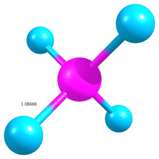 After you get the final geometries optimized by AIQM1 and ANI-1ccx, you can view their structures and compare their bond lengths in your favorite visualization program. CH4 geometry at AIQM1 is shown below: